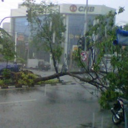 "Saat itu saya terkena traffic light Pucang ke arah Ngagel Selatan. Tiba tiba pohon yang didekat lampu TL roboh dan melintang menutup jalan Pucang Anom Timur ke arah Kertajaya," kata Joni, Rabu (17/12/2014).