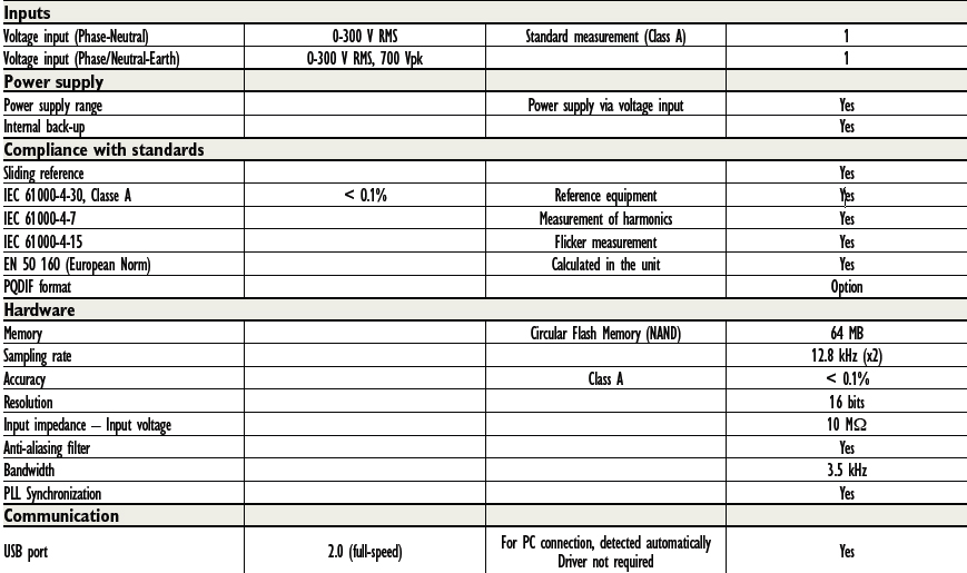 • 2 voltage channels: phase/neutral and phase/neutral-earth