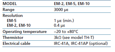electromagnet. The EM-5 is the standard model and is used in different types of structures, as mentionned above. The EM-10 consists of a rugged version to be embedded in concrete with coarse aggregates. The shorter EM-2 model is designed for laboratory use or for limited spaces. Unless specifi ed otherwise, the  gauge tension is factoryadjusted at mid-range. The gauge is very compliant. It does not induce stresses
