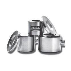 encountered during normal operations. A steel housing with o-ring seals covers the spool and pro tects the strain gauges from mechanical damage and water infi ltration. A plain PVC or armor-jacketed electrical cable is wired directly to the cell or is con nected via a detachable multi-pin connector. On large cells, the cable exit is parallel to the surface of the steel housing to give better clearance.