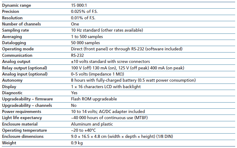 Paten 5.392.117 dan 5.202.939), UNTUK 1 adalah mampu pengukuran dengan akurasi yang mengagumkan yang mutlak panjang rongga Fabry-Perot fi ber Transduser optik, penyediaan ding konsistensi waktu setelah waktu di yang paling buruk kondisi. The-UNTUK 1 memiliki 0,01% F.S. resolusi (tanpa rata-rata) dan 0,025% F.S. presisi. Pembacaan-1 UNTUK memiliki buffer memori non-volatile yang dapat menyimpan hingga 50 000 data sampel. Datalogging urutan, durasi dan parameter operasional lainnya diprogram dengan mudah menggunakan antarmuka panel depan atau melalui port komunikasi RS-232. The-UNTUK 1 datang standar dengan port komunikasi RS-232