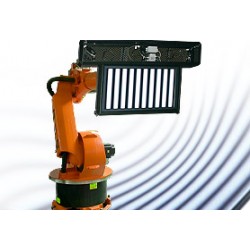 By scanning in a scanning cabin, the location and geometry of the objects to be processed can be recorded digitally. On the basis of this data, the robot programme is adapted by the system to each object, and then processing is performed by the processing robot. The process is carried out automatically, without any manual intervention.