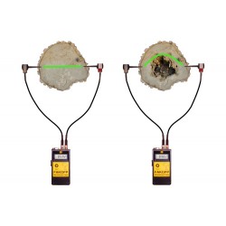The Microsecond Timer is designed to measure stress wave propagation time in trees. The signal is generated by a hammer tap on the start sensor and the unit displays the measured propagation time. By measuring the distance between the two sensors, velocity can be calculated which can be used to detect hidden decayed regions or holes between the two sensors.