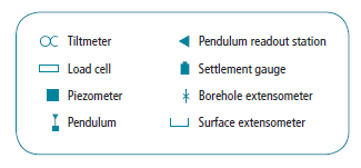 • Ground settlement and piezometry under the monument using respectively borehole extensometers and piezometers
